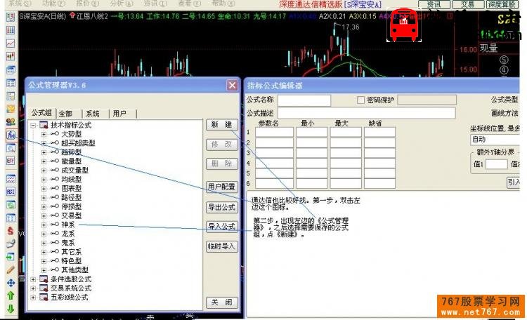 由于这几种编辑器的展开和使用大同小异。所以,本文仅以技术指标公式编辑器为例加以说明。